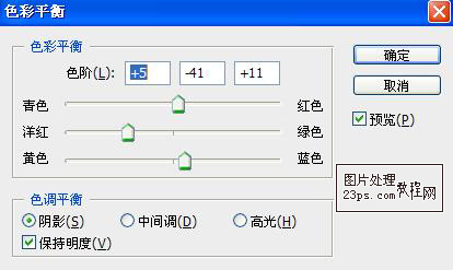 10.新建色彩平衡調解層,具體參數如下