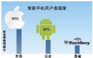 谷歌安卓手機的忠誠度為60%,而黑莓只有48%。調查還稱(chēng),當用戶(hù)在他們的設備終端上使用的應用程序和服務(wù)數量達到七個(gè)或以上時(shí),他們更換其他品牌產(chǎn)品的概率就會(huì )大大降低。