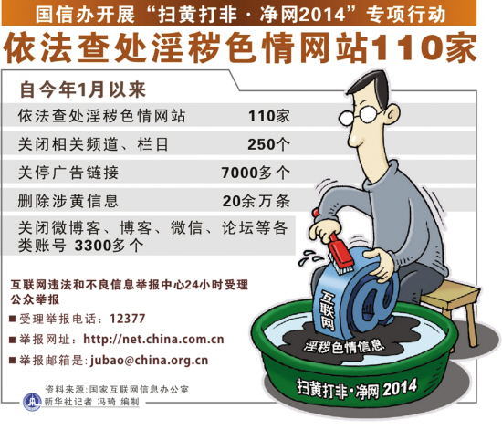 針對互聯(lián)網(wǎng)傳播淫穢色情信息問(wèn)題,北京市文化市場(chǎng)行政執法部門(mén)從2013年起,連續開(kāi)展“凈網(wǎng)”行動(dòng),今年以來(lái)已重點(diǎn)對網(wǎng)絡(luò )文學(xué)網(wǎng)站、手機文學(xué)網(wǎng)站、移動(dòng)智能終端應用程序平臺等進(jìn)行檢查,查禁淫穢色情網(wǎng)絡(luò )小說(shuō)、視聽(tīng)節目等文化產(chǎn)品745種,立案40起,罰沒(méi)款544.95萬(wàn)元;吊銷(xiāo)許可證2個(gè),關(guān)閉網(wǎng)站48家,責令網(wǎng)站清理淫穢色情信息30余萬(wàn)條,關(guān)閉貼吧、論壇612個(gè),封停用戶(hù)703個(gè)。